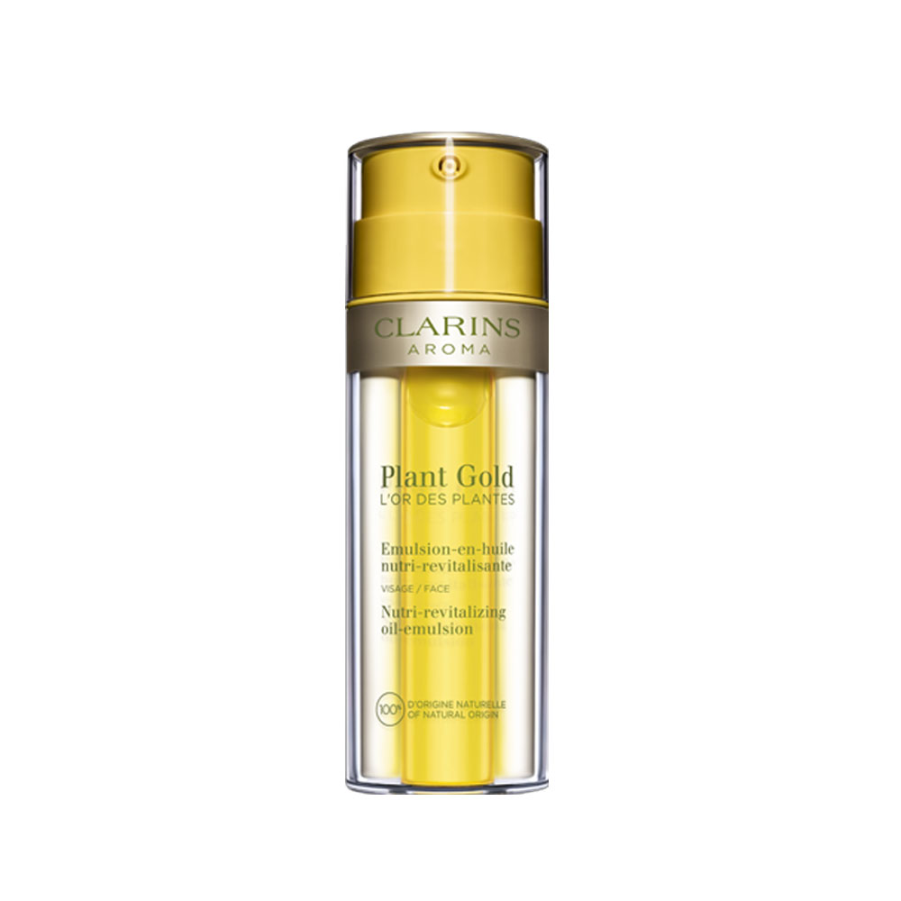クラランスがこだわり抜いた植物由来成分をふんだんに配合した、100%自然由来(水を含む)*1のユニークな二相式乳液。なめらかなオイルと溶けるような感触のエマルジョンのダブルのテクスチャーが、手のひらの上で混ぜることで初めて完成し、フレッシュなまま肌に心地よく伸び広がります。プラント フェイス オイル デハイドレイテッドスキンのブルーオーキッド*2のうるおいとパチョリ*3の香りが肌を包みます。また、ヘーゼルナッツ、マカデミアナッツ、グレープシード、アーモンド*4のプラントオイルカクテルが肌をなめらかに整えます。